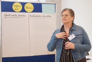 Beate Pfeiffer machte auch deutlich, dass viele Grenzverletzungen unbewusst geschähen, weil die jeweiligen Grenzen nicht geklärt seien. Es sei wichtig, dass die Grenzen dann angesprochen werden, um das Verhalten anpassen zu können. „Wir müssen eine Kultur entwickeln, in der wir wir anfangen, über unser Grenzerleben zu sprechen“, sagte sie. Hierfür sei es erforderlich, Machtstrukturen zu kennen und vernünftig mit Fehlern umzugehen. „Fehlermachen ist erwünscht“, sagte sie. Eine Reflexion von Fehlern verbessere die Qualität der Arbeit. Es gehe dabei nicht um die Suche nach Schuldigen. „Im Arbeitskontext ist ein Fehlverhalten immer mit den Strukturen der Organisation in Verbindung zu sehen“, sagte sie.