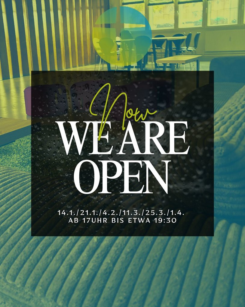Am 14./21.1.; 4.2.; 11./25.3.; 1.4.2026. Von 17-19:30 sind wir da. Komm vorbei!